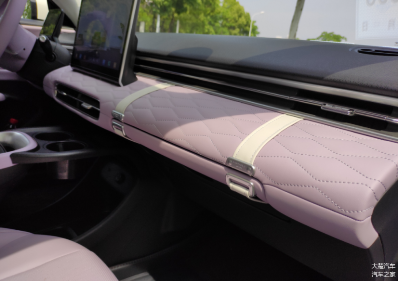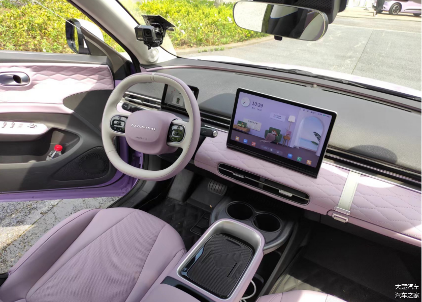 内饰依旧运用了紫色与白色的组合,营造出一种宛如置身于香甜香芋冰淇淋世界的感觉。做工方面也是相当细致,皮质的座椅走线十分工整,主驾驶的座椅还能电动调节,不仅有迎宾、记忆、加热、通风这些功能,还能一键躺平180度,满足你工作日午睡的需求,这在同级别的车里可是独一无二的,东风纳米真的把用户体验放在了心上。