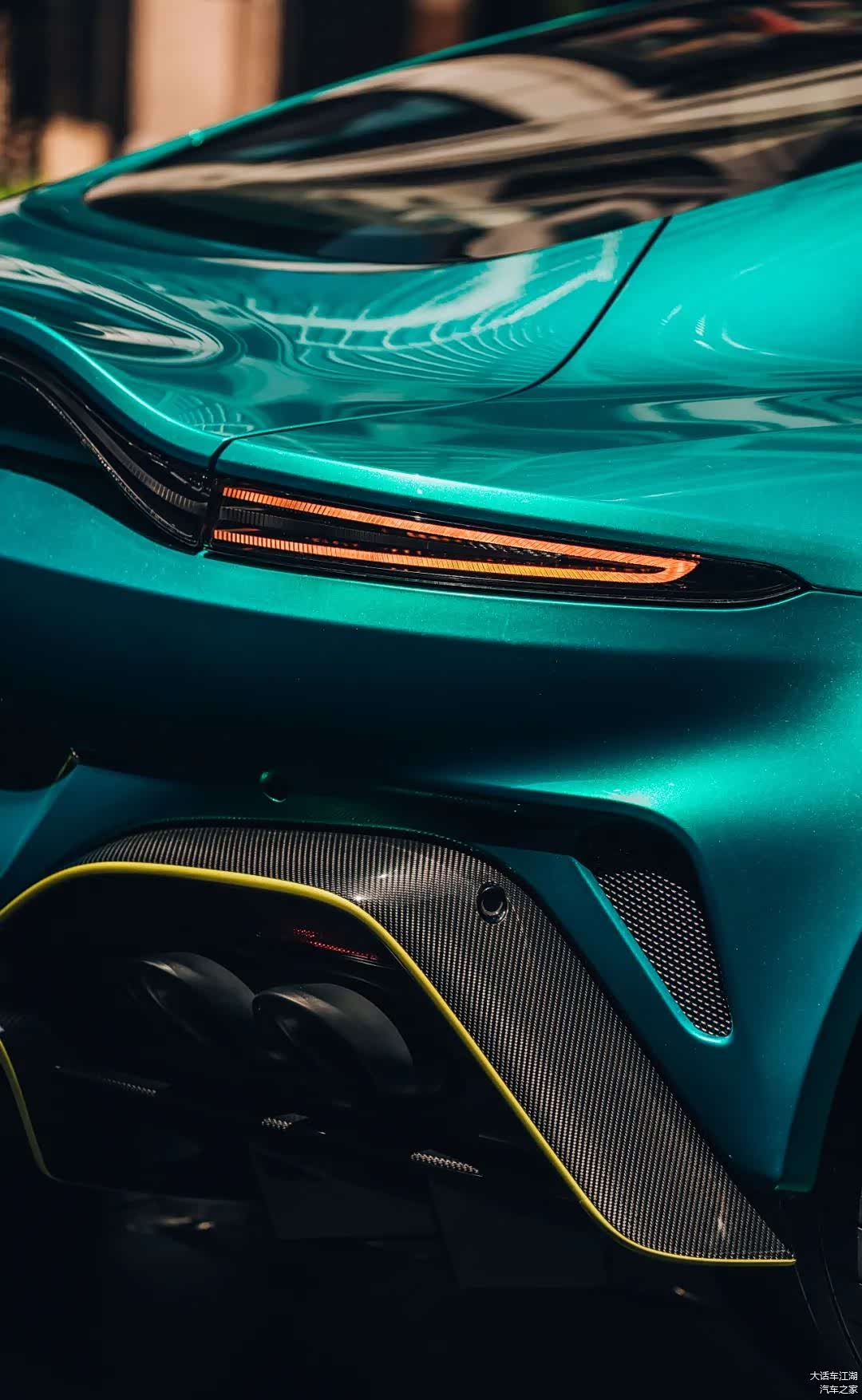 车尾造型是阿斯顿·马丁留给自己充分发挥性格的部分,上方波浪边缘继续向上延伸呈现鸭尾造型,下方双边四出排气则充分展示出了性能属性。