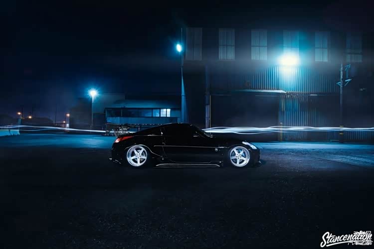 对于不少喜欢电影的人来说,第一次开始认识350Z是在2006年《速度与激情3东京漂移》中,当时由VEILSIDE改装的黑蝙蝠350Z是电影中D.K(漂移王,反面角色)的座驾。因此也掀起了一股日产Z战车的改装浪潮,这台SHIRO的来自罪恶之城拉斯维加斯的恶魔Z的改装作品在外型上更显神秘,黑到骨子里的外观颜色,大包围的运用,气动开启,趴在地上的凶悍劲头,犹如伏地魔,震慑人心。