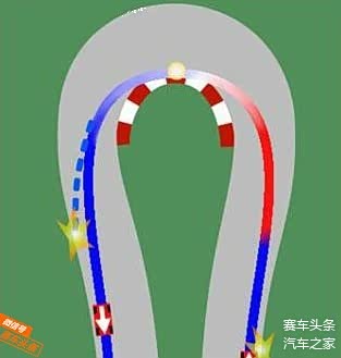 U型弯在卡丁车比赛中是最难的,因为在过U型弯时会有入弯速度和出弯速度两种不同的侧重,汽车之家编辑“涛神”王涛老师对于U型弯的技巧也讲出了自己的一些心得。“首先,如果侧重入弯速度,那么就意味着要晚刹车,入弯时的角度就会变大,出弯角度小,虽然这样在弯心的速度会很慢,但这样出弯时会更便于加油出弯。需要注意的是,晚刹车并不意味着要急于打方向,许多没有太多经验的车手使用这种方式入弯时,因为赛车尾速过快会担心错过入弯点而拼命打方向,这样做的后果就是赛车会失控侧滑,原因就是赛车在速度很快的情况下转弯,由于后轮失去了抓地力导致转向过度。所以,我们在晚刹车入弯时,一定不能慌,等赛车降到合适的速度时再打方向入弯。”