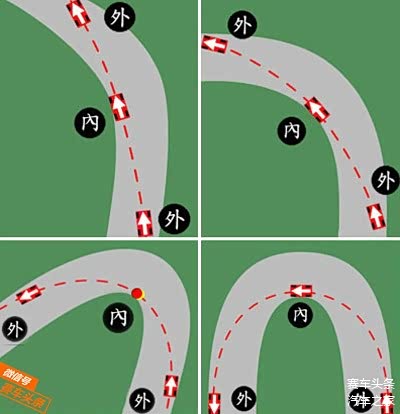 其实,上面提到的驾驶技术都是标准情况,最关键的过弯原则就是要做到外-内-外,入弯前紧贴弯道外侧,入弯时尽量切过弯心,出弯后再次贴住弯道外侧,但实际驾驶中我们很难做到精准,所以有时就需要一些小技巧来弥补自己的小失误。