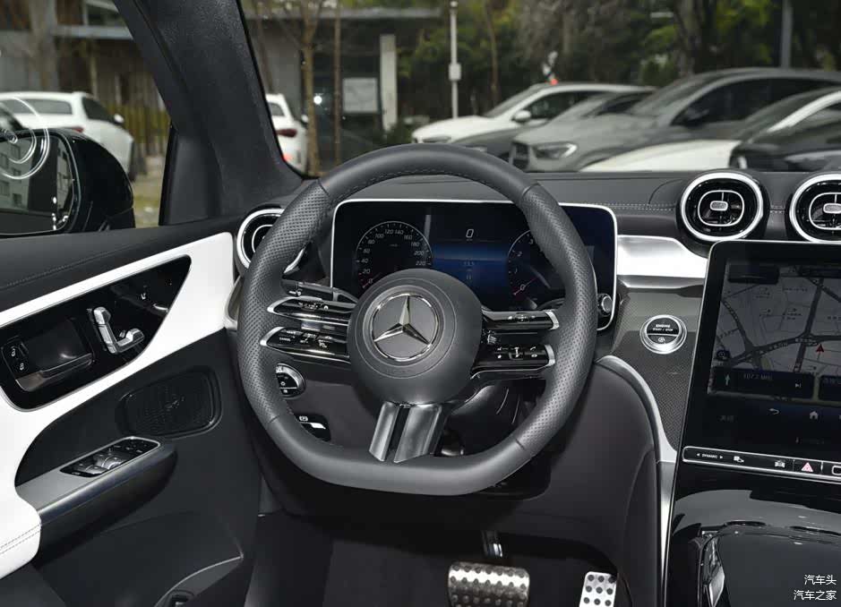 内饰部分,新车科技方面的表现不错,仪表盘为悬浮式设计,尺寸12.3英寸,中控屏内嵌式设计,尺寸11.9英寸,内置的是MBUX系统,操作反应一点不卡。我们熟悉的圆形出风口也出现在这款车上,并采用了对称式设计,整体的观感和谐。方向盘为三辐式平底结构,造型和上一代车型有些区别,新车还有抬头显示,支持语音唤醒等功能,智能化方面有进步。