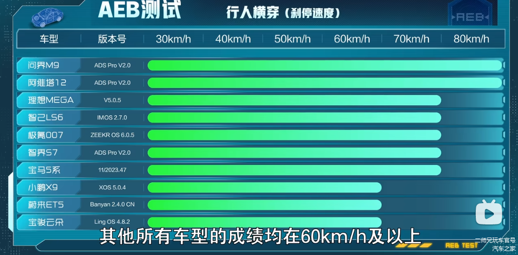 首先,华为系车型在AEB方面遥遥领先,甚至,在部分项目上是断层式领先。