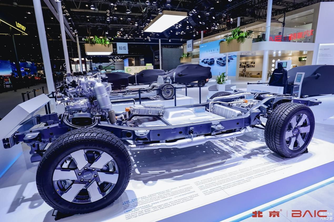 高效补能单元,采用了高热效率、高持续功率的增压增程器,实现了补能动力的高效输出。本次车展亮相的BJ60魔核电驱版所搭载的增程器,可以持续保持90kW高功率输出,增程器发电效率达到97.5%,在时速145km时保持电池电量平衡。