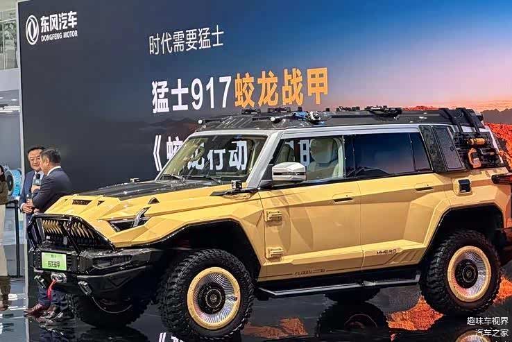 2024北京国际车展目前正在举行,今天要说的这款车,属于在本届车展上亮相的一款全新车型—— 猛士917(图片 | 参数 | 询价)蛟龙战甲联名版,新车属于一款大型SUV车型,不过相比较普通版猛士917来说,新车的外观更加的硬派大气,在设计方面将“军武”风格和“蛟龙”风格相结合,配备有全新的车顶扩展平台、多功能挂架以及房车拖挂系统等功能,越野性能更是给力,接下来我们一起来了解了解吧。