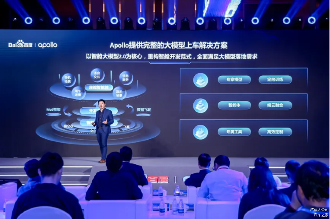 百度集团副总裁、智能驾驶事业群组总裁王云鹏表示“好的智驾,应该是一个靠谱的好司机,什么道路都能开,什么车位都能停。城市智驾的成本要做到足够低,不能只在20万以上的车选配,应该让15万的车都能标配。好的智图,应该让车机地图和手机地图成为一体,同步更新、一样好用,让车企不再发愁产品更新,让车主不再需要手机支架。好的智舱,应该要重构人和车的关系,成为车主离不开的贴心小助理。百度Apollo不仅要为车企提供现成的座舱智能体,还要提供专家模型和开发工具,方便车企定制开发。”