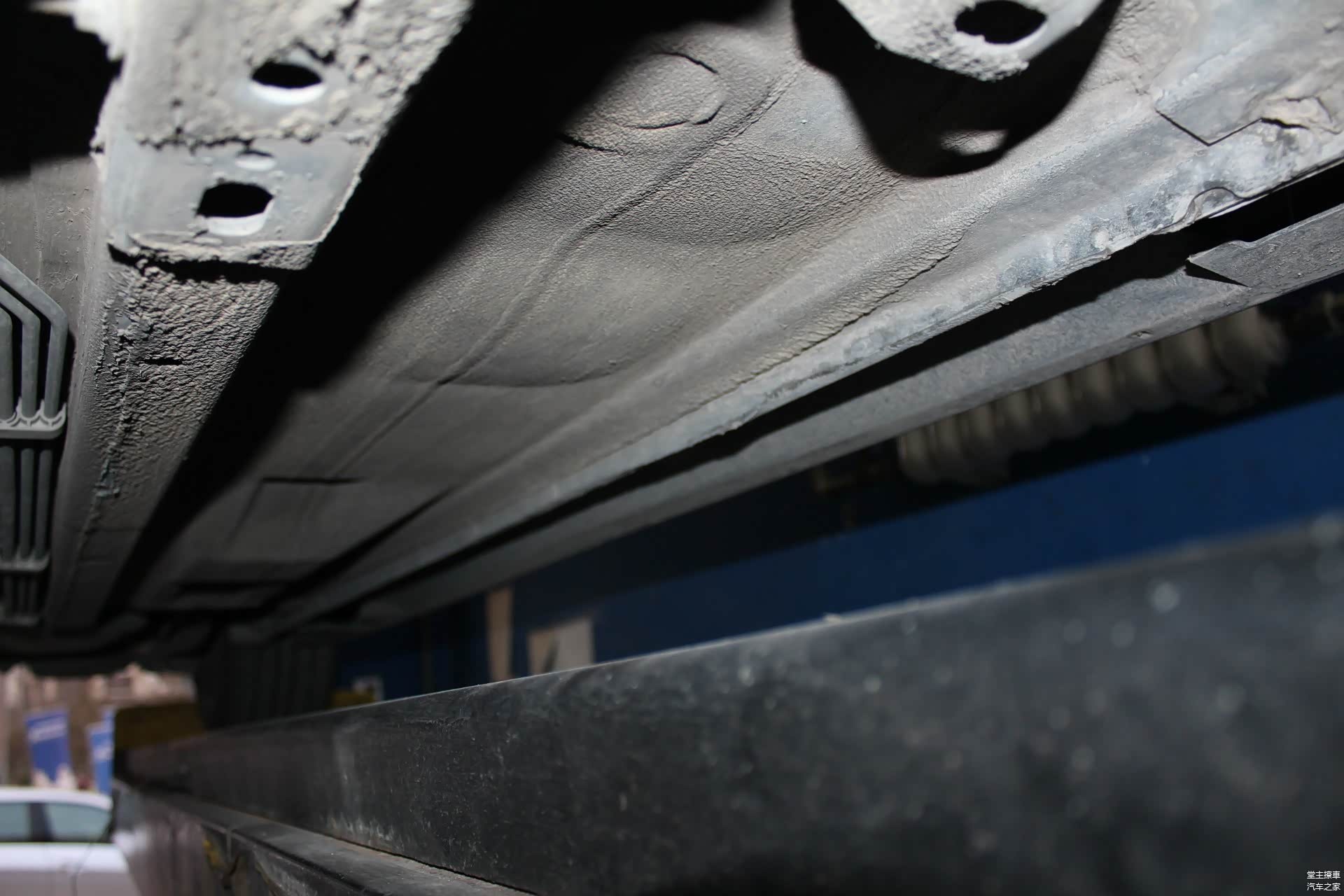 底大边和车身纵梁丝毫无伤,一切都保持着原样。只是要吐槽一点的是,原厂的马自达6在底盘装甲这块做得并不是很到位,涂层很薄,防锈隔音的工作做得相对一般。如果底盘装甲厚点,行驶的厚重感跟品质会上升一个级别。有石子打在底盘上,传来的声音也会更加沉闷厚实。