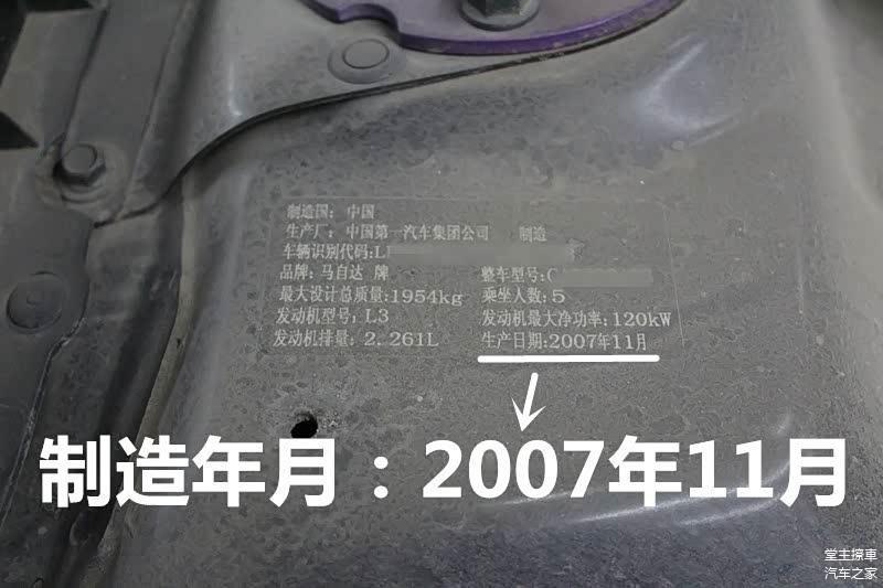 这台顶配马六,制造年月是07年11月,上牌日期是08年初,距今八年多一点,行驶里程11万左右,车主是在一年前淘的二手车,入手时里程数在10万左右,价格也是10万。