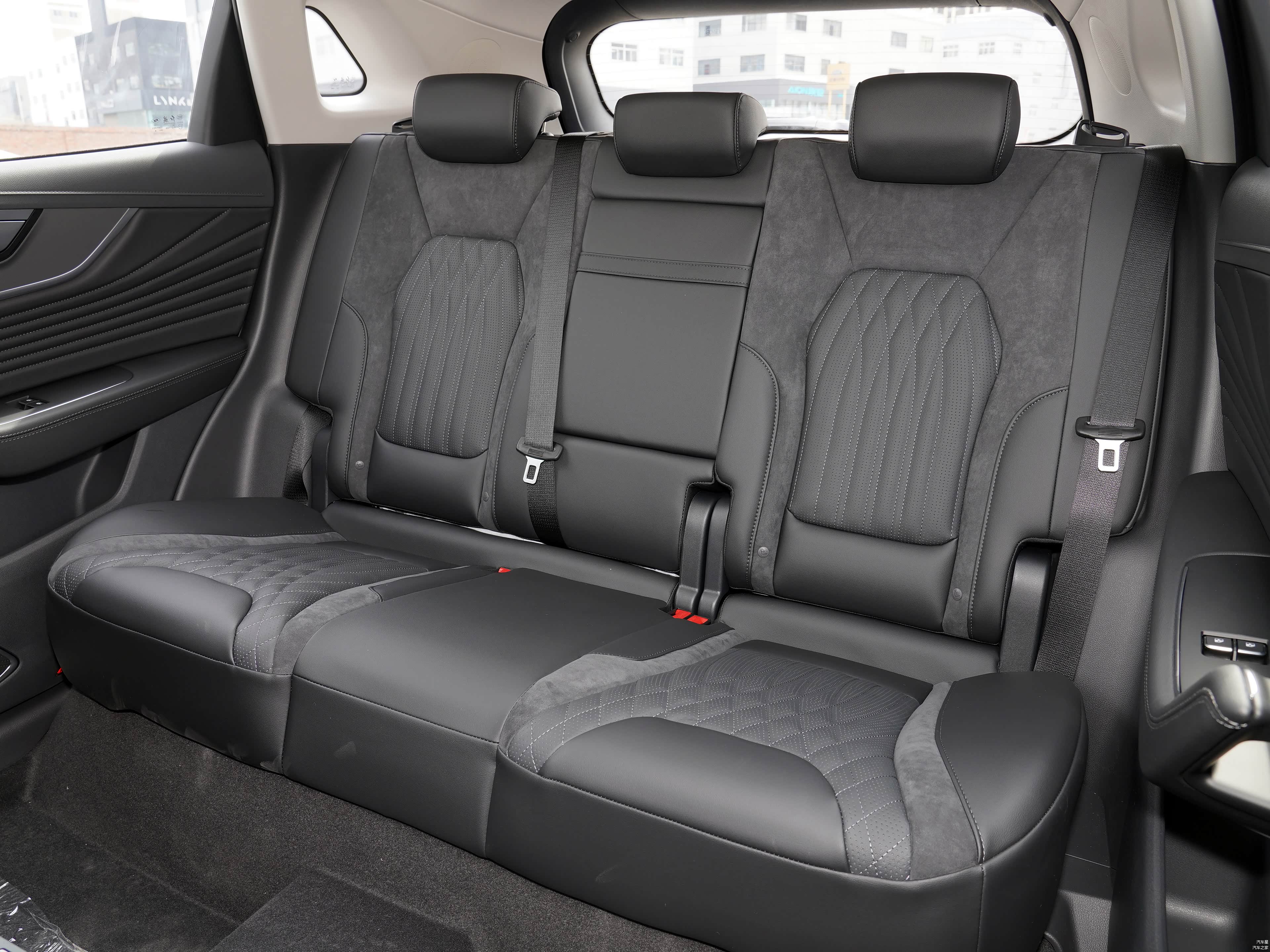 整车尺寸长宽高分别为:4785mm、1905mm、1700mm,轴距为2870mm,定位于中型SUV,座椅采用真皮+仿皮材质,座椅上加入了图案进行勾勒,摸起来质感明显,主副驾驶座椅支持电动调节,主驾驶座椅整体支持前后移动、高低调节和靠背角度调节,副驾驶座椅支持前后移动和靠背角度调节功能,前排座椅拥有加热和通风功能,体验者身高为1米77不过体重偏胖,坐在后排还有接近三拳左右,头部剩余空间还有接近一拳,作为家用汽车,空间表现还是不错的。