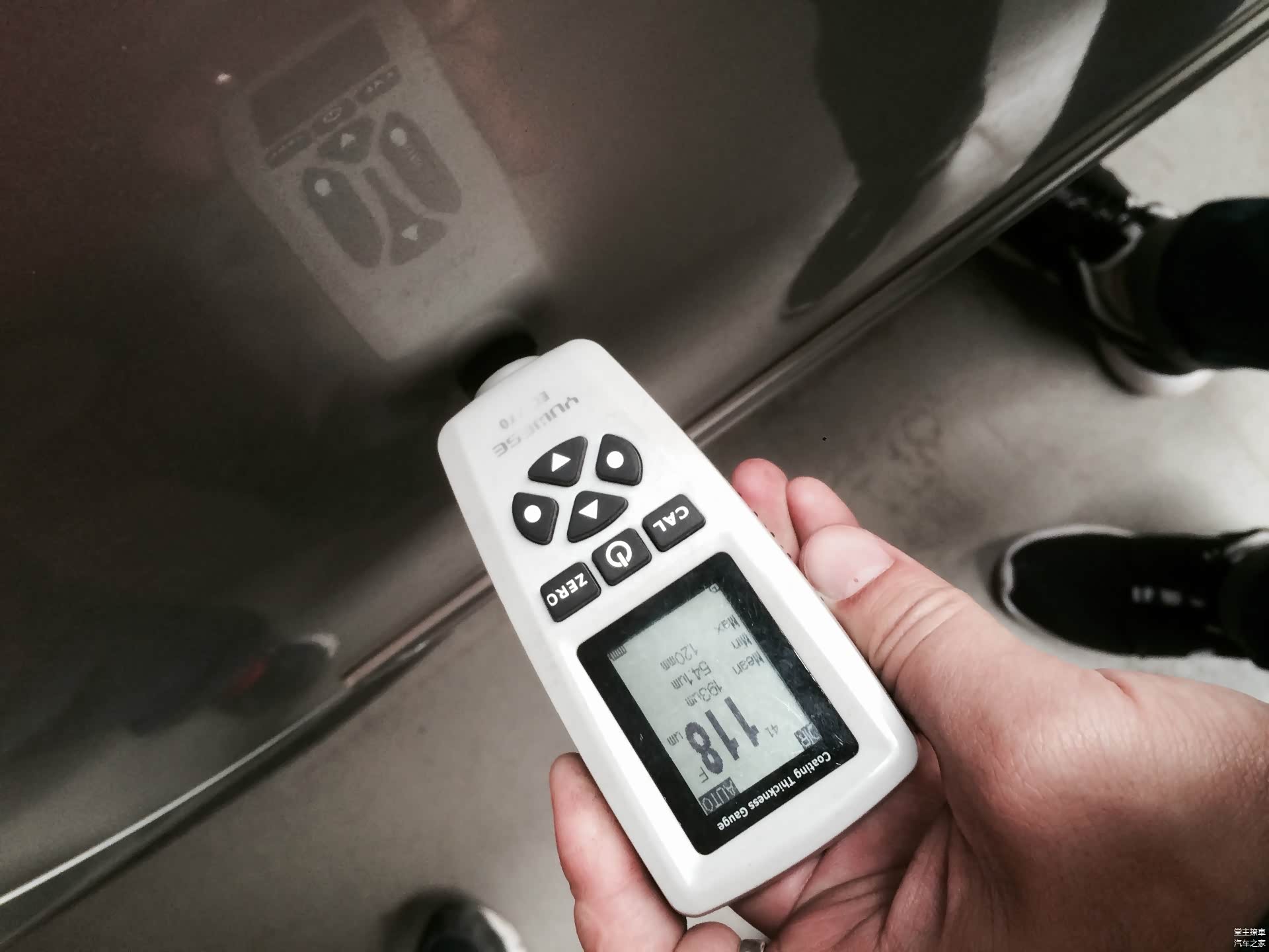 再看上图,这个地方的油漆只有118um,这个数值是在一个正常范围的。正常车辆的油漆厚度,在100um上下之间游走,日韩系很多低端车油漆很薄,只有大概80到90um,这也就是为何很多日韩系车主总说油漆容易被刮伤的原因。