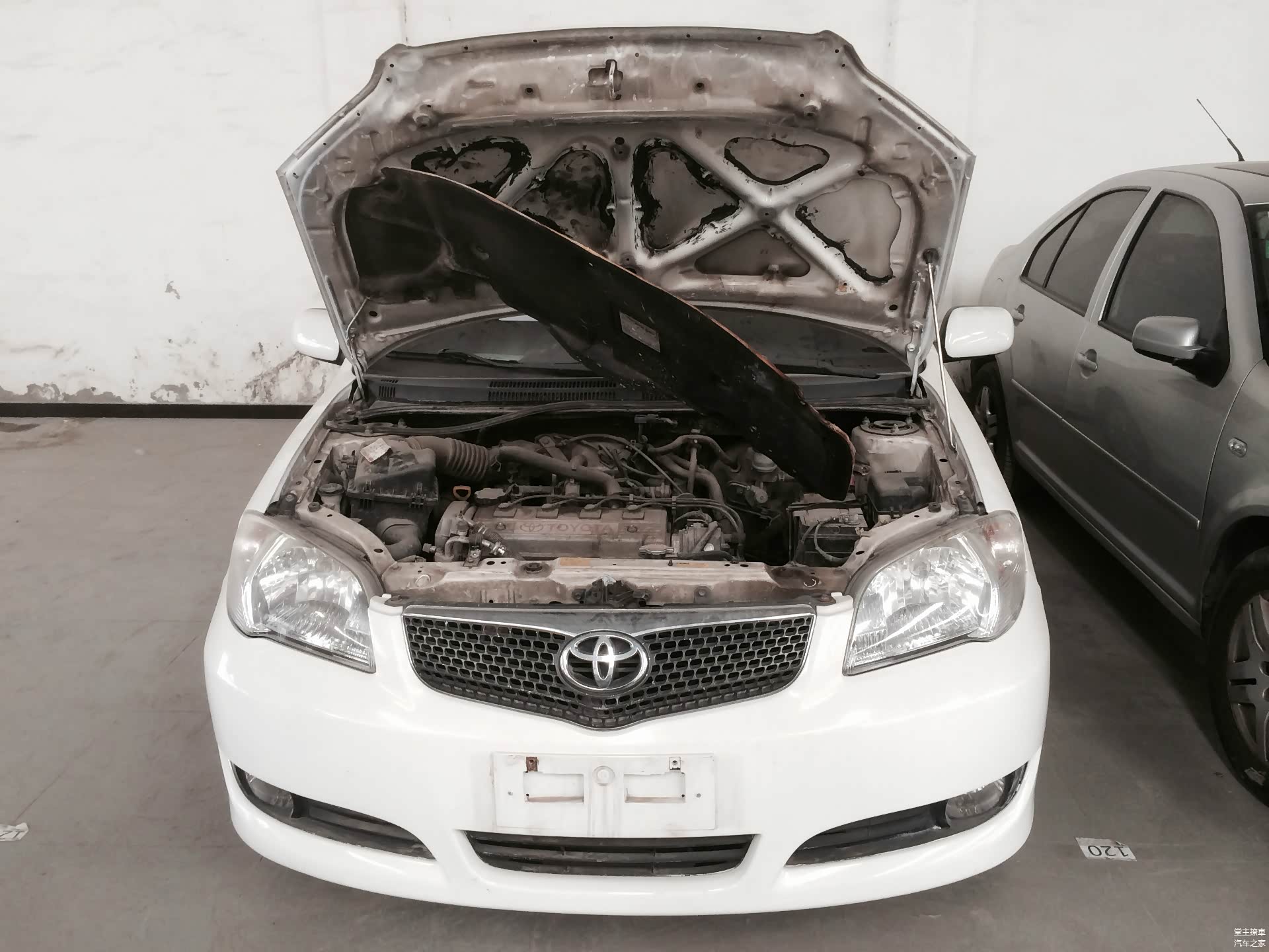 看的第一台车就是个车况极差的丰田威驰,整个机舱钣金痕迹明显,各种电焊的痕迹,就像皮肤上长了牛皮藓。