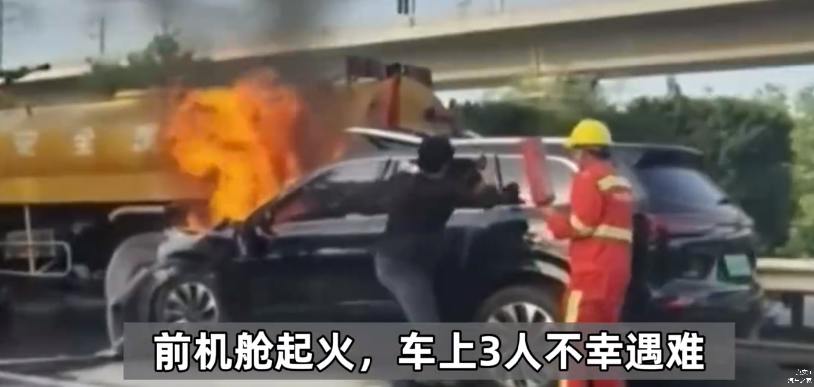 另一个大家关注的问题是车辆起火的原因以及电池是否自燃。根据问界官方的说明,事故车辆与前方道路养护车发生高速追尾碰撞时,由于前方车辆尾部突出梁状坚硬结构的瞬时严重侵入,事故车辆的前机舱和乘员舱遭受了严重损坏。这导致线束瞬间被切断,前机舱被高温部件或线束短路火花引燃。火势迅速蔓延至整个车辆,但值得庆幸的是,动力电池包并未发生自燃。这说明问界在电池安全方面做得还是相当到位的。