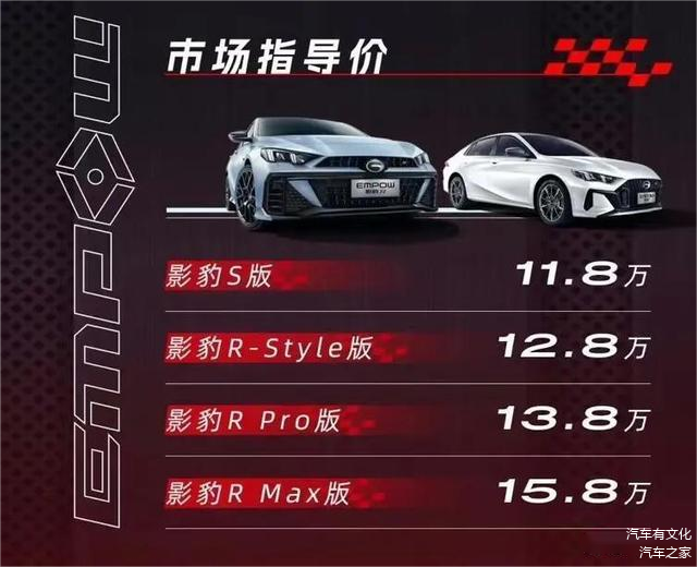 新款影豹全系列标配了主驾驶位座椅电动调节、前排座椅加热、32色氛围灯、雅马哈品牌音响、双区自动空调、定速巡航、360度倒车影像等高端配置。而R-Style版、R Pro版以及R Max版等不同配置车型,还提供了更多个性化和安全性配置,如镂空尾翼、自适应巡航系统、盲区监测、车道保持辅助等。