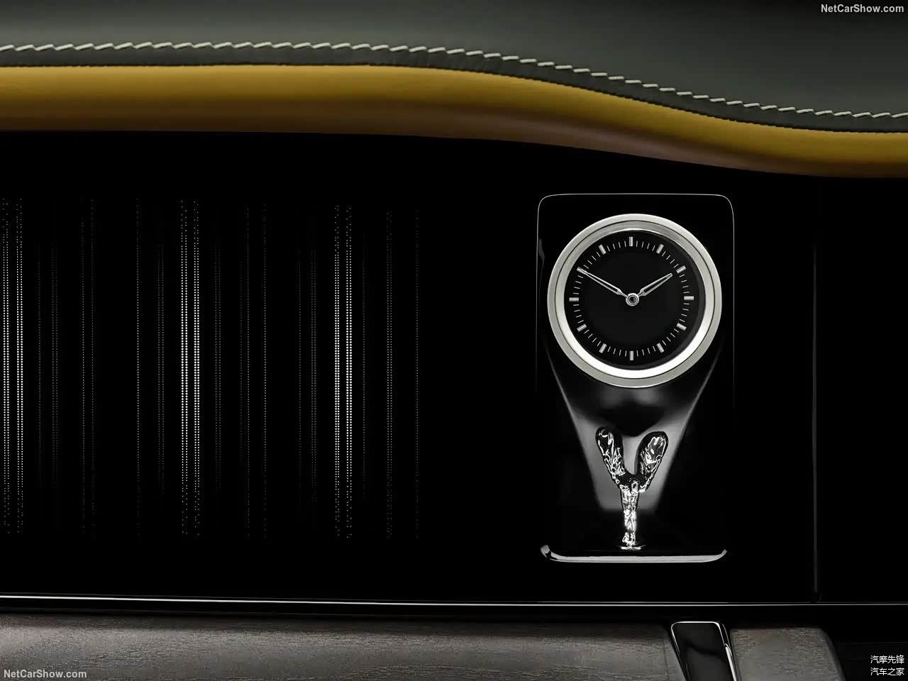 在仪表板乘客侧的中央信息显示屏旁边是新的时钟柜。这个独特的镶嵌玻璃展示了一个模拟时计和一个点亮的雕像。