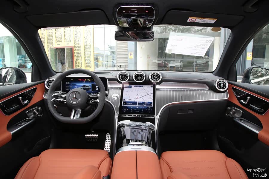奔驰GLC的车内中控台区域设备组件均朝向主驾驶方面倾斜偏移,给驾驶员地阿莱更为便利的视野角度,带来更加便利的操作空间和感受,台面以大面积银色金属饰板进行覆盖,其带来的光泽度和质感较为不错,中间部分还搭载一块11.9英寸的竖状中控触摸屏,左方全液晶仪表为12.3英寸,整体设计风格呈现着智能时尚。