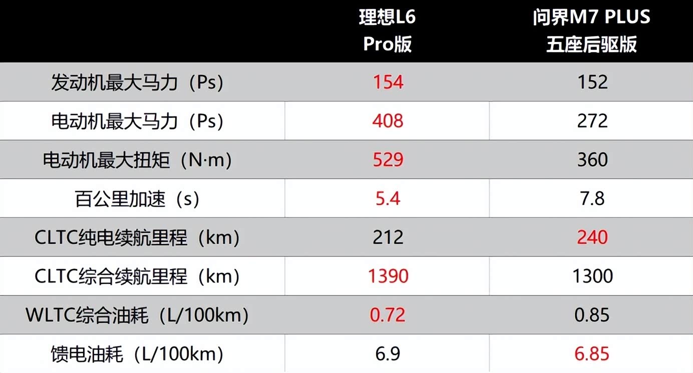 动力性能是理想L6 Pro版的强项。使用电动四驱,前后双电机布局。而问界M7 PLUS五座后驱版为单电机。