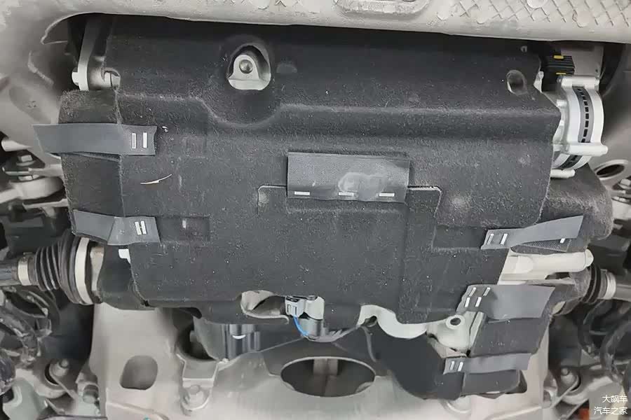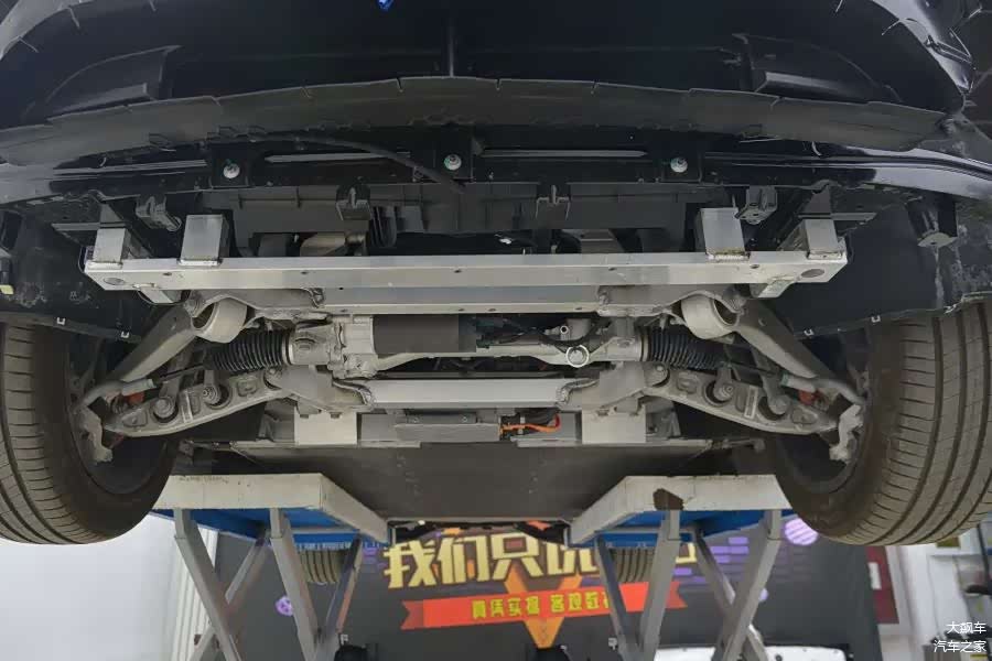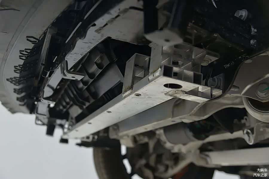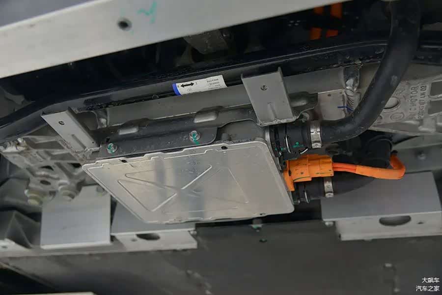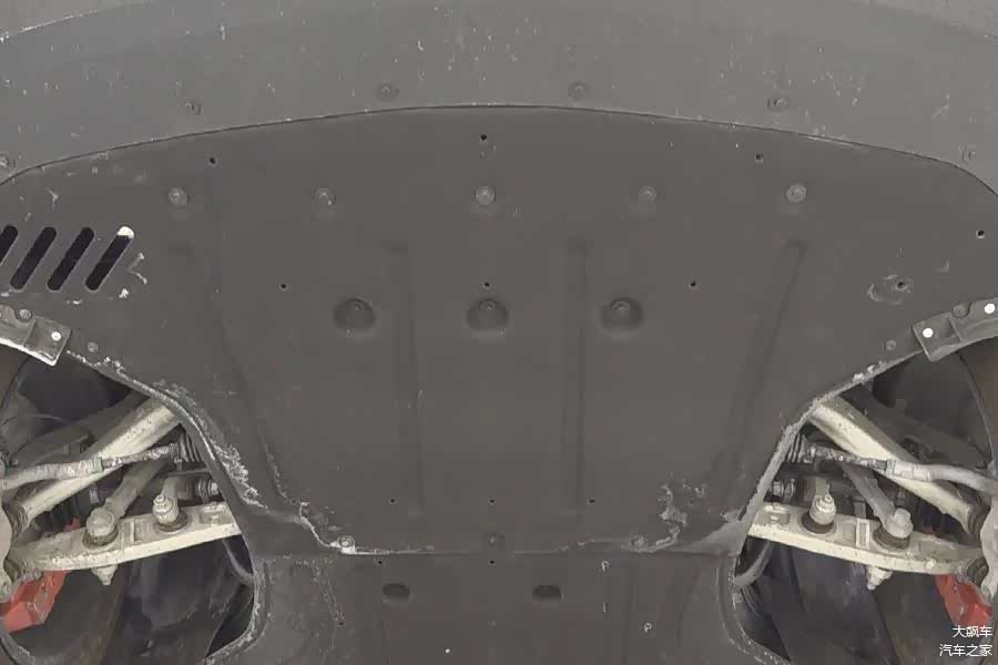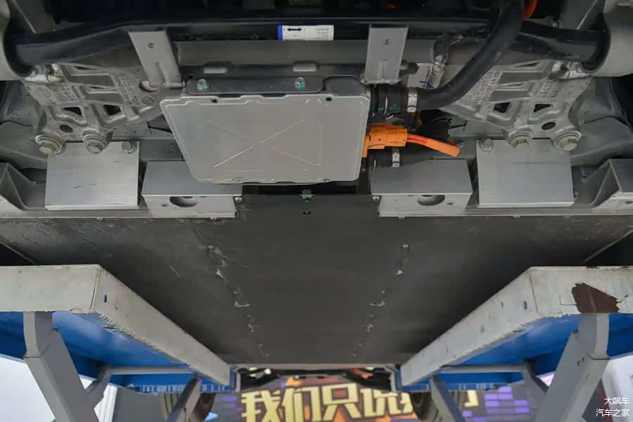 因为是纯电动车型,所以底盘平整度还不错,护板从前到后非常完整,没有缺失。