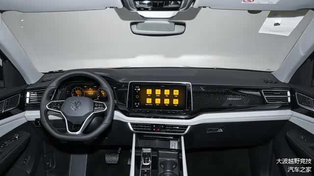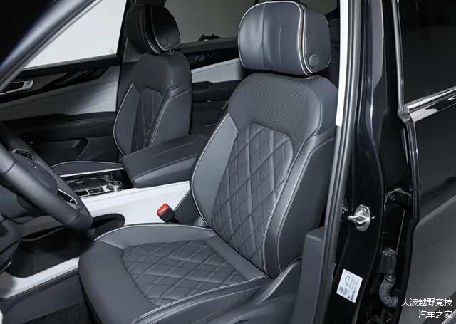 乘坐方面,途昂/途昂X出众款采用皮/织物混搭或仿皮材质包裹的座椅,并且在途昂车型上还提供了2+3+2的7座布局。菱形格样式的纹理与柔软的皮质,营造出颇具奢华的氛围感;并且充实的填充物及侧面的包裹性,也为长途的乘坐带来舒享的体验。全系除龙腾版以为,均支持主/副驾驶多向电动座椅调节/加热/通风功能;主驾驶位带有座椅记忆功能;第二排座椅靠背可调;后排座椅可比例放倒;并带有前/后中央扶手及后排杯架。