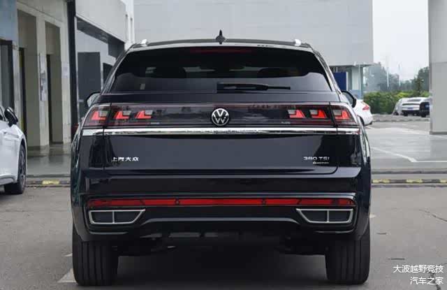 立体而又敦实的车尾让途昂/途昂X出众款看起来更为饱满。车顶上沿悬浮的尾翼流露出对于速度的憧憬。途昂X上的熏黑尾灯组尽管不是贯穿式设计,但配合下方的镀铬饰条,带来更具张力的表现;而途昂上贯穿的3D全LED智能尾灯,点亮后带来夺目于心的赏析性。两款车型虽说都采用了隐藏式排气布局,但硕大的排气尾喉也突显了对于性能的向往。