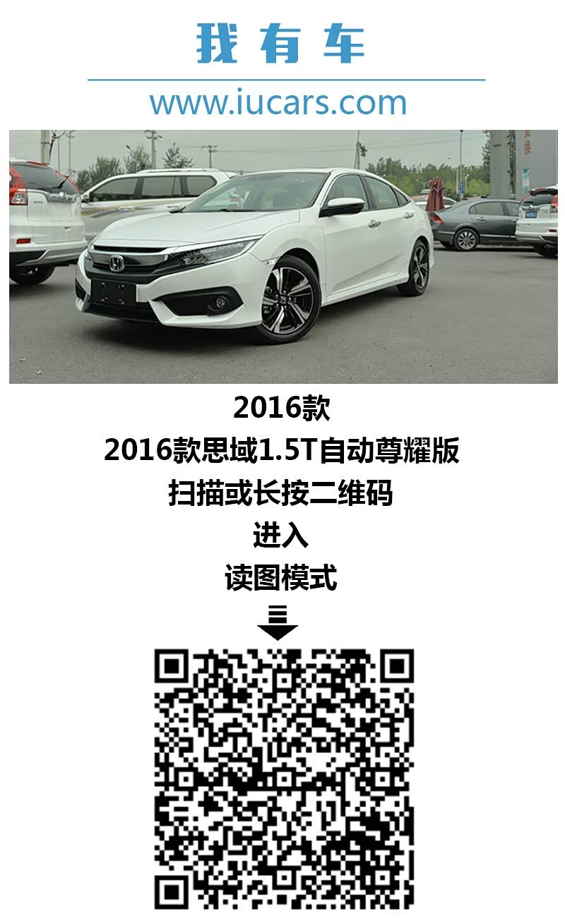 想了解2016款思域1.5T自动尊耀版的更多的信息,请扫描点击二维码,将带给您不一样的体验!《我有车》还会有更多重磅车型呈现给您!