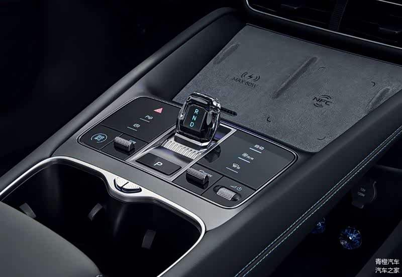 内饰部分,海狮07EV座舱使用了皮质、金属铝饰板以及软包材质,搭配“海洋之心”之心的水晶挡把,使得整个座舱兼具豪华氛围与科技感。