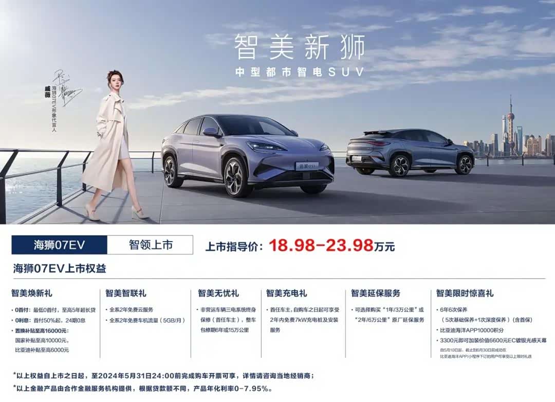 总的来看,海狮07EV已经将纯电SUV的三电实力卷到了一个更高的水平,同时也彻底补齐了智能化方面的短板。在此之外,设计、空间、配置、安全等方面的表现都是同级领先。此时再回看18.98-23.98万元的售价,比亚迪无疑是在打一场纯电决胜战。