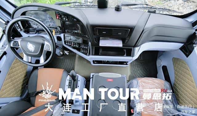 再来看一下曼恩拓越野房车的驾驶室,气悬座椅做起来很舒服,6AT自动挡的变速箱,方向盘看着特别大,但转起来非常非常的轻,美女开起来都是没有问题的,而且方向盘是多功能的,控制面板的按钮,每一个使用起来都像飞机驾驶室一样,咔咔咔的声音很清脆。