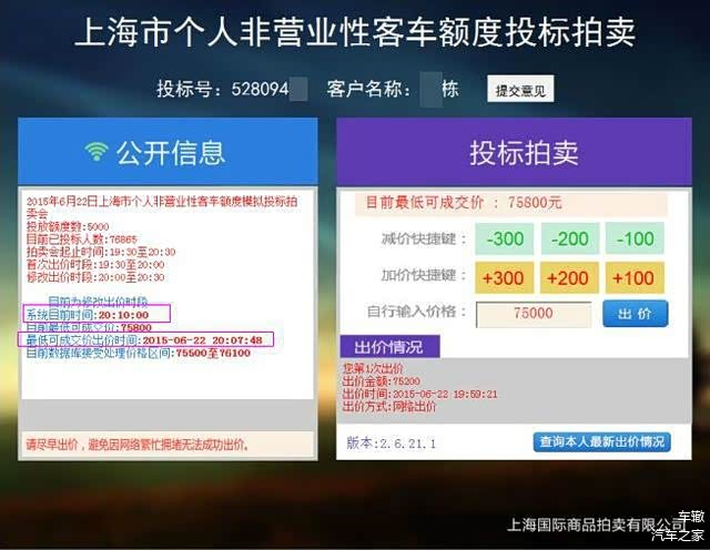 具体的解释比较复杂,简单地说,就是你有钱也不允许随意出价了,假设现在牌照价格为80000元,那么只有出价在80000~80300之间才有可能拍到牌照,而在拍牌时,牌照价格是不断向上跳动的,你必须在最后几秒之内给出比当前价格高300的出价,再输入几个难以辨认的验证码。因此,沪牌拍卖成为了一个比拼手速、网速、读验证码能力和心理素质的综合考验。