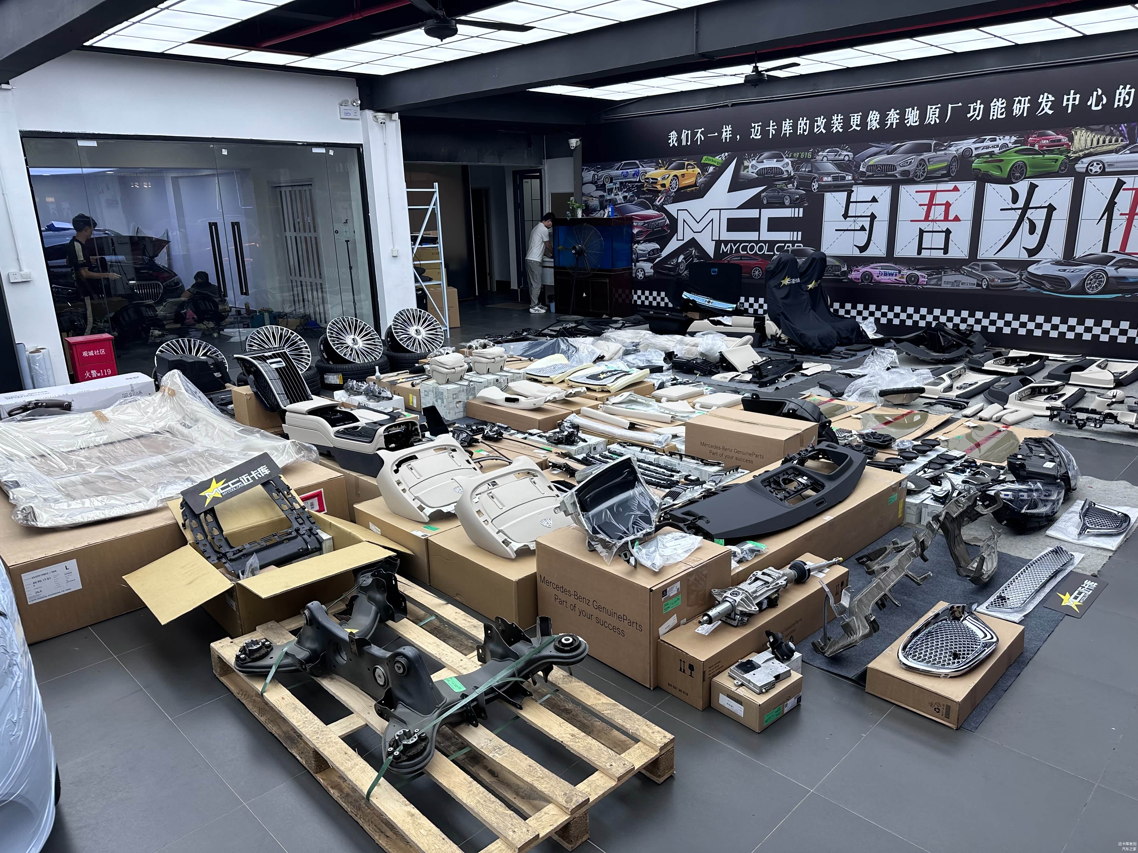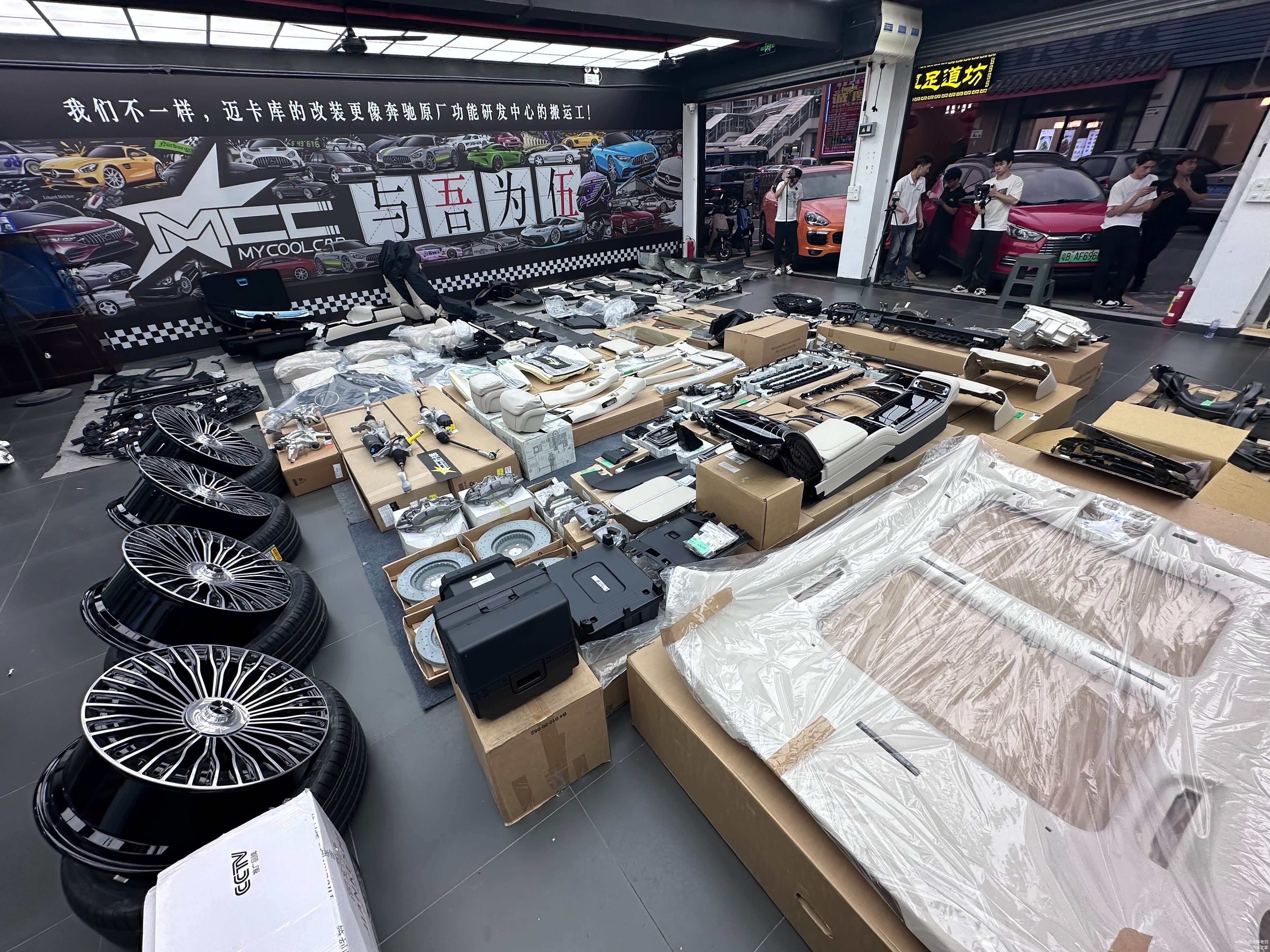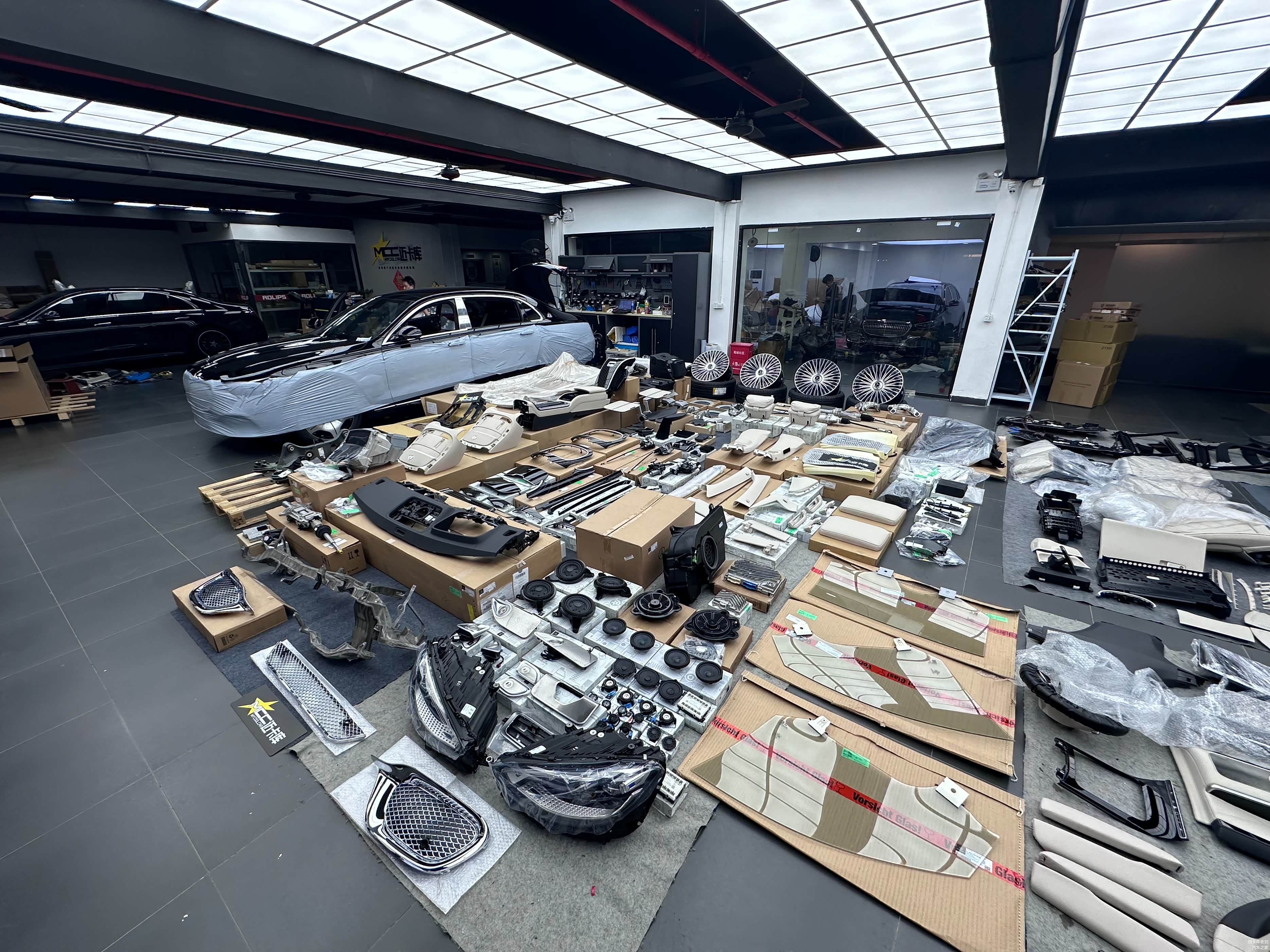 凝视着地面上琳琅满目、井然有序地摆放着的各式配件,我们不禁惊叹这次车辆升级的工程之浩大。从车辆外部的革新到内饰的奢华顶配,都将让我们重新认识这台迈巴赫S480给我们即将带来的惊艳亮相。我们将从几个方面来展示这台车的升级项目: