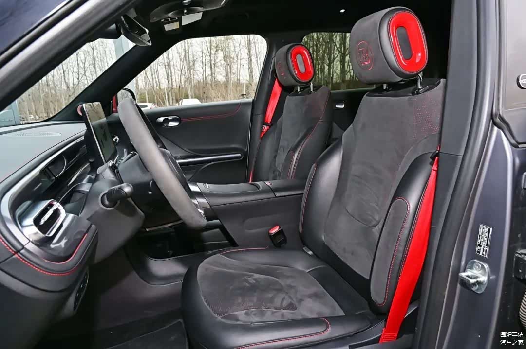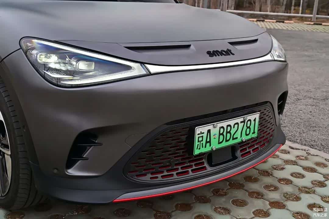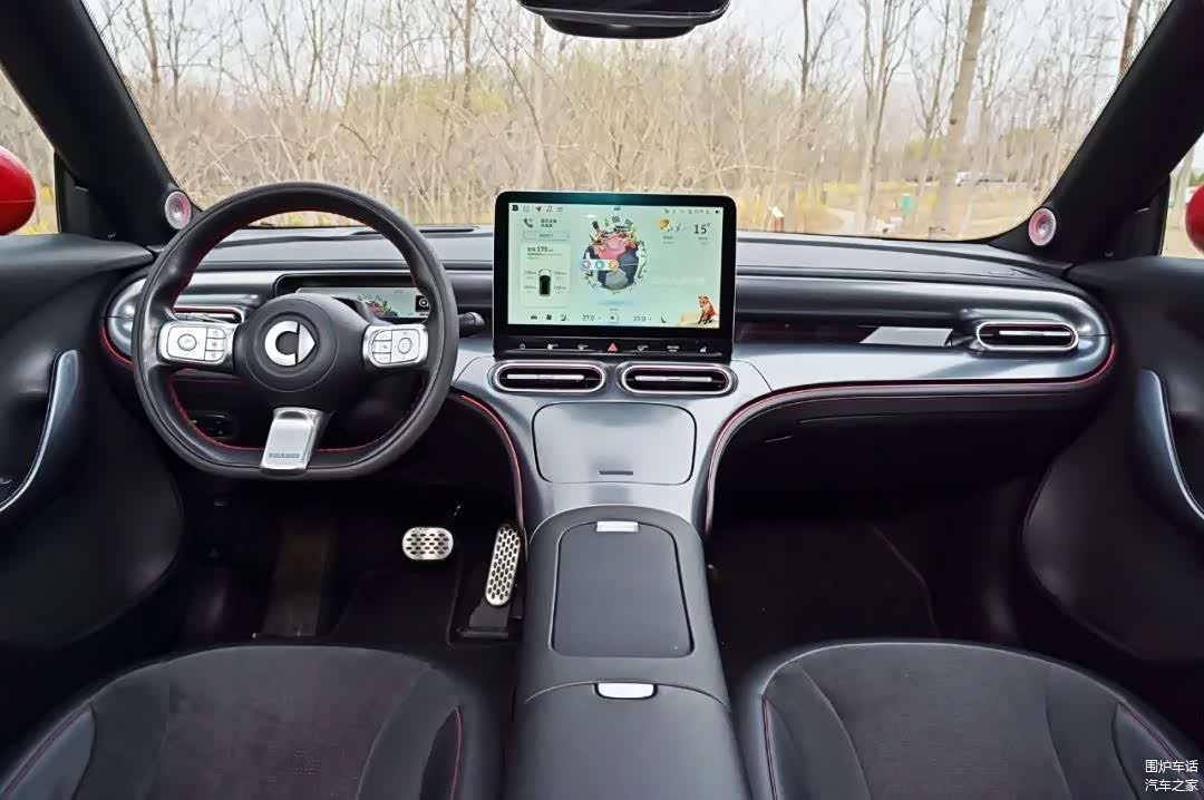 他的外观造型就是在smart精灵#1基础上增加了专属的运动套件,这在各车系中都很常见。车头有车尾和侧裙边的运动包围都是带有红色饰条的亮黑色材质,车头机舱盖的前端开了进气孔,而车身所有的标识都是黑色的,双色的轮辋配上红色的卡钳也是他的专属配备。