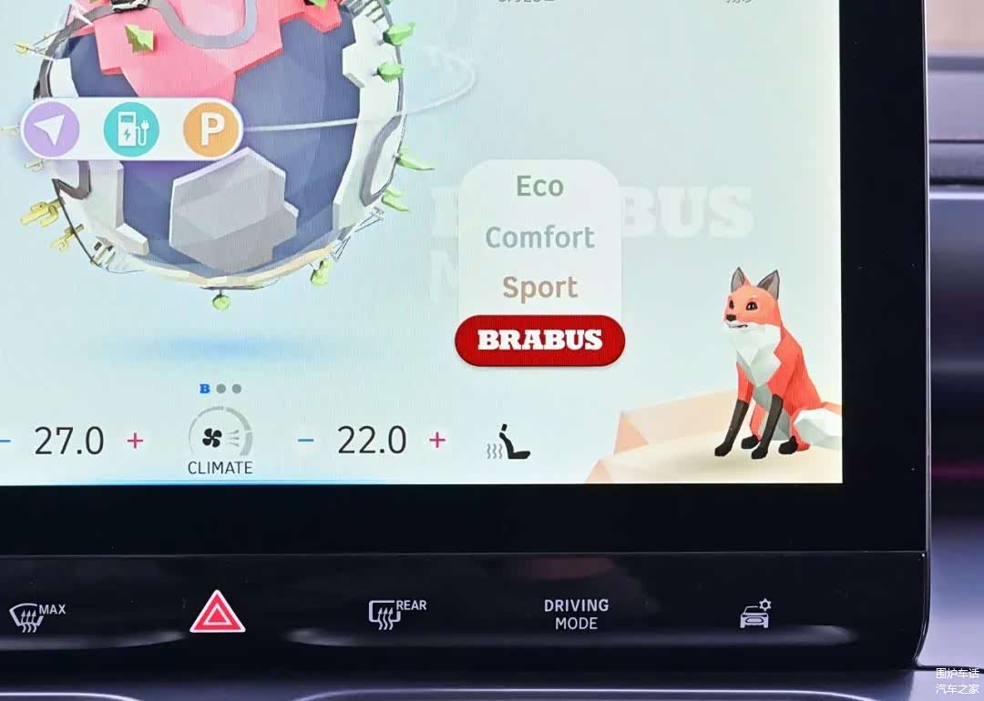 换到运动或者BRABUS模式,他好像换了一个性格,动力的响应更快,猛踩油门强劲的加速力给你带来了推背感,而且开始的动力爆发不会过于刚猛,仍是线性的爆发,感觉一切还在掌握,不会过于紧张。这里要称赞一下他的模拟声浪设置,在动力的爆发中声浪也会随之而来,没有违和感,就像是开燃油动力的小钢炮,直戳你的肾上腺素,驾驭激情自然迸发。
