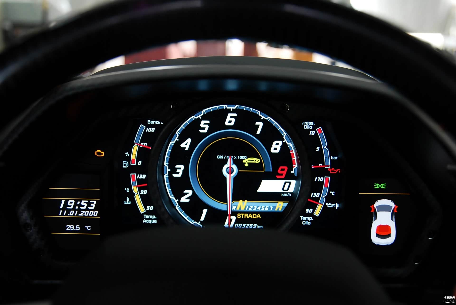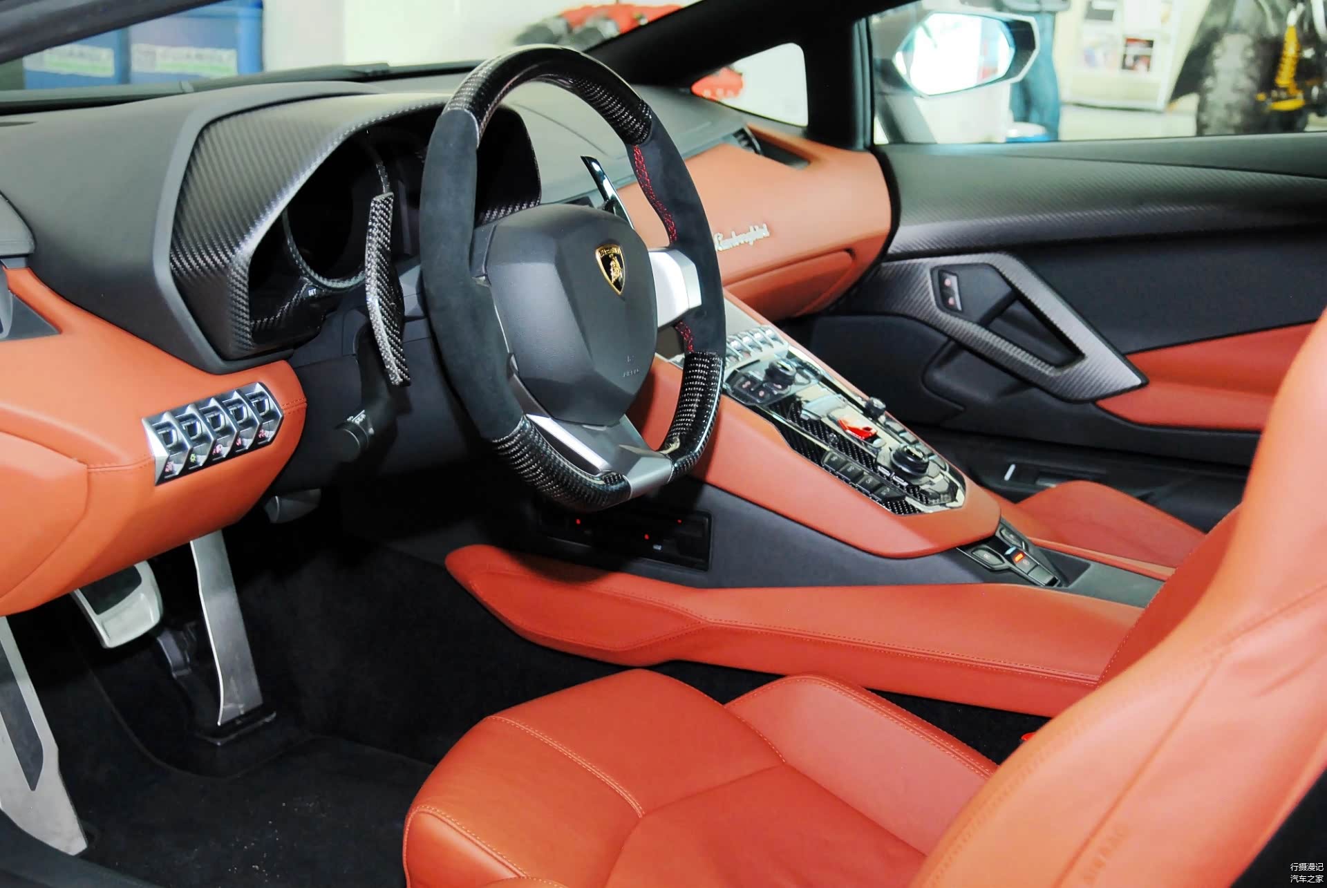 Aventador的仪表盘、内饰与外观同样充满了犀利而科幻的风格,大量真线条六边形设计与金属构成了战斗机仓般充满战斗气息的驾驶氛围。
