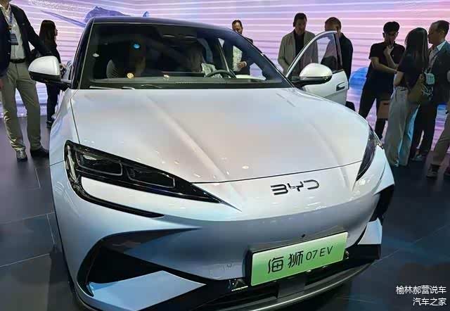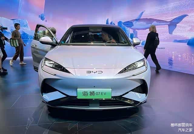 在2024年北京车展上,比亚迪海狮07EV惊艳登场。虽然车展上并未过多透露其详细信息,但真正的亮点将在5月10日的上市发布会上揭晓。这款车在前脸设计上别出心裁,尖锐的车鼻搭配弯钩状日行灯的熏黑大灯组,展现出与海豹相似的风格。前保险杠部分设计夸张,三段式镂空装饰凸显了比亚迪品牌在运动SUV领域的独特之处。