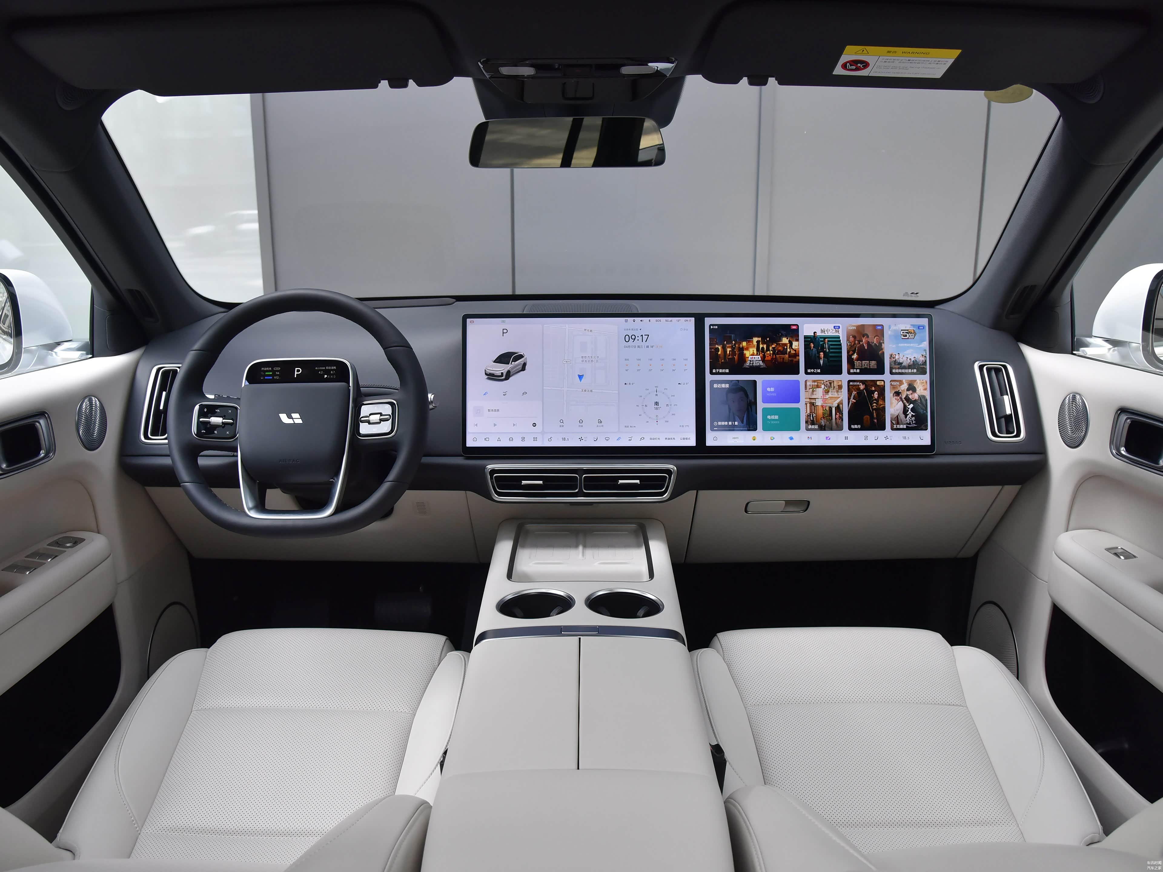 内饰方面,理想L6配备了总面积高达1.26平方米的全景天幕,并配备了电动遮阳帘,音响系统则采用了19喇叭扬声器,同时还有256色氛围灯的加持。此外,理想L6还搭载了方向盘上的可触控显示屏、13.35英寸高清HUD抬头显示器、4.82英寸全液晶仪表盘、15.7英寸中控屏幕以及15.7英寸副驾驶屏幕等高端配置。其中,内置的高通骁龙8295P芯片支持5G网络连接。在中央部分,理想L6配备了两个50W无线充电板、杯架以及中央储物槽,而中控台下方则设计了一个开放式的储物空间。除此之外,理想L6还配备了容量为8.8升的冰箱抽屉,该抽屉可从后排中央拉出,支持0至7摄氏度的冷藏和35至50摄氏度的保温功能。