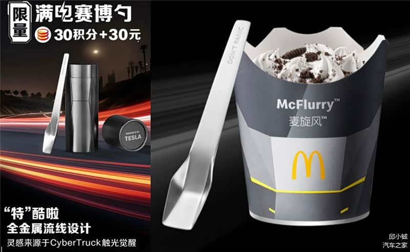 特斯拉推出“钢铁”周边已成惯例。之前还有Cyberwhistle哨子、不锈钢开瓶器等,中国粉丝最容易获得的限量款周边是售价30元+30麦当劳积分的联名款“满电赛博勺”,用来挖麦旋风简直能量满满。