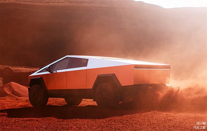 这种涂鸦风格的字母,甚至在C、R、U、K等字母下方还有油漆流挂的效果,虽然和赛博皮卡棱角分明、线条平直的特点有些不符,但同样地与众不同,很是吸睛。当然,也有人说这样的标识不好看,吐槽设计师审美不在线,不过这也算一种热度,就像特斯拉刚刚诞生时,总是伴随着争议。