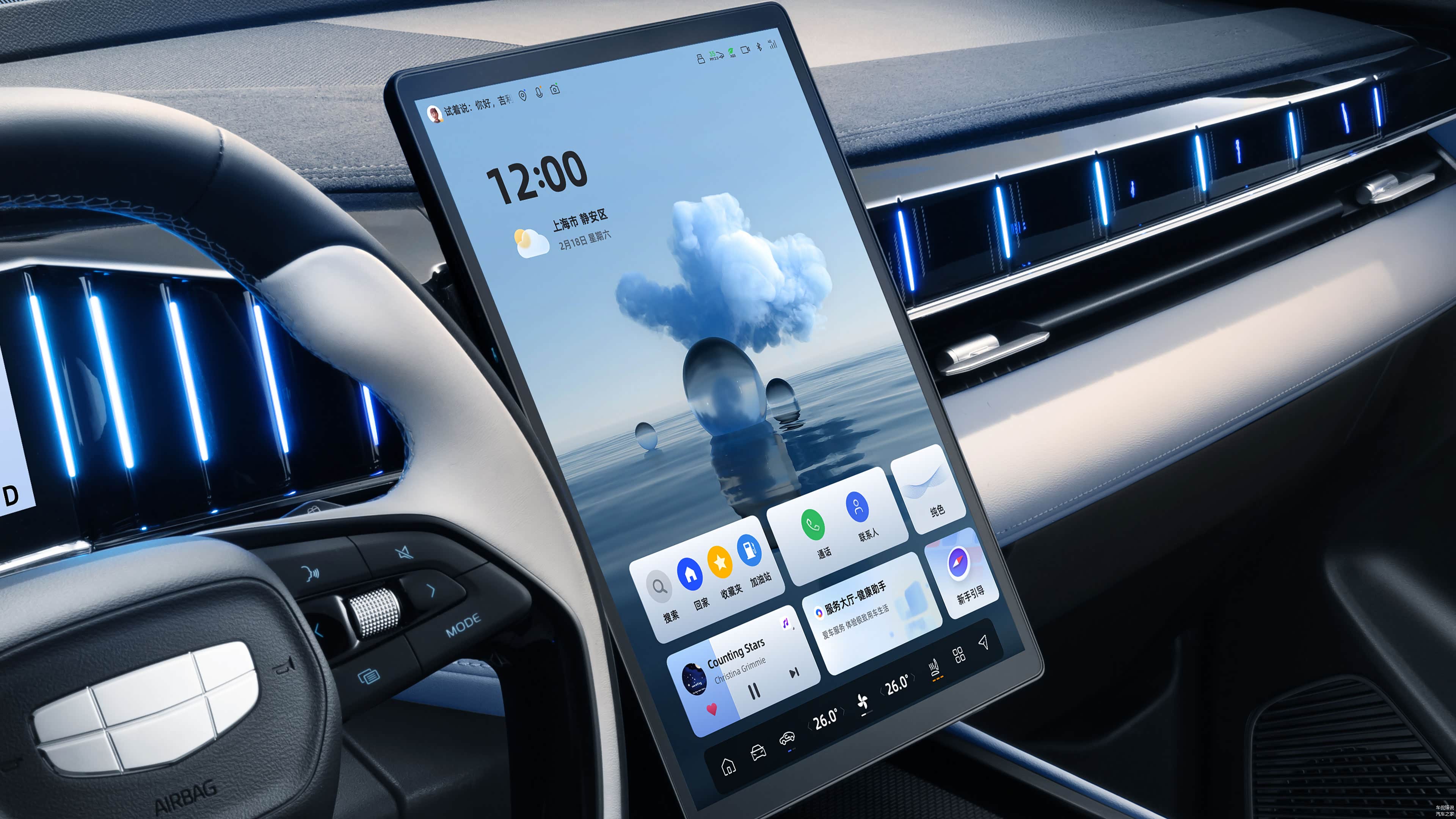 内饰设计上,新博越L其全系仪表是10.25英寸,中控屏全系是13.2英寸,他的中控屏采用的是竖屏,其实吉利对竖屏还是较青睐了,博越L是吉利的王牌SUV,采用竖屏;吉利银河L7是吉利转型新能源的重磅车型,一样采用的是竖屏。其搭载的是吉利银河OS系列,拥有高通骁龙8155芯片的加持,整体的交互、流畅度、可玩性等可圈可点。新博越L除了“入门版”没有车内氛围灯,其他版本都配置了,拥有车内氛围灯确实让其看上去科技感更强。
