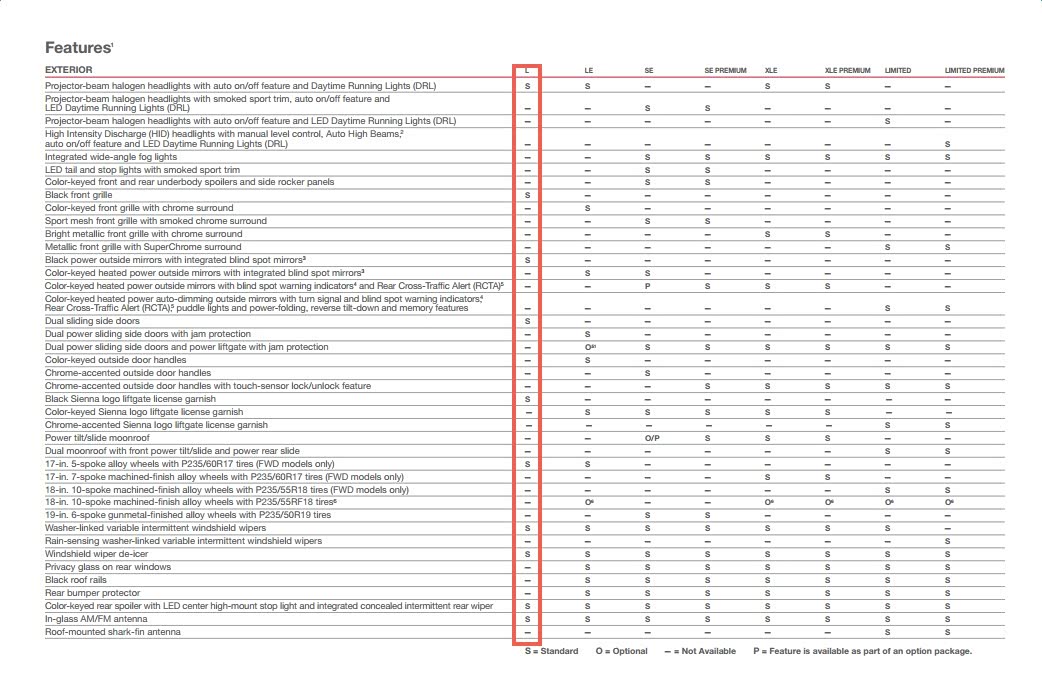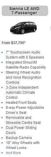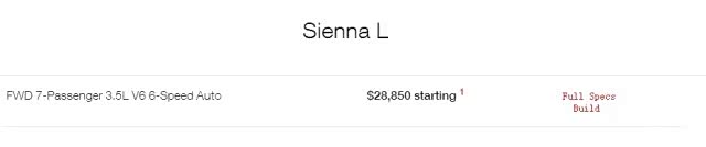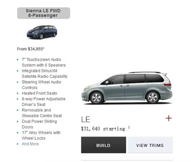 如果要购买前驱八座车型,最便宜的就是次低配车型,也就是售价3.4995万加元起的塞纳两驱LE8座车型,对应美版车型售价为31640美元起,按照人民币汇率依然是加版更便宜。在对比他们的配置,我们依然发现加版配置更高,但加版的选装包没有美版那样丰富,有关配置的选装包仅提供一键启动+车辆遥控启动(无智能卡)一项。