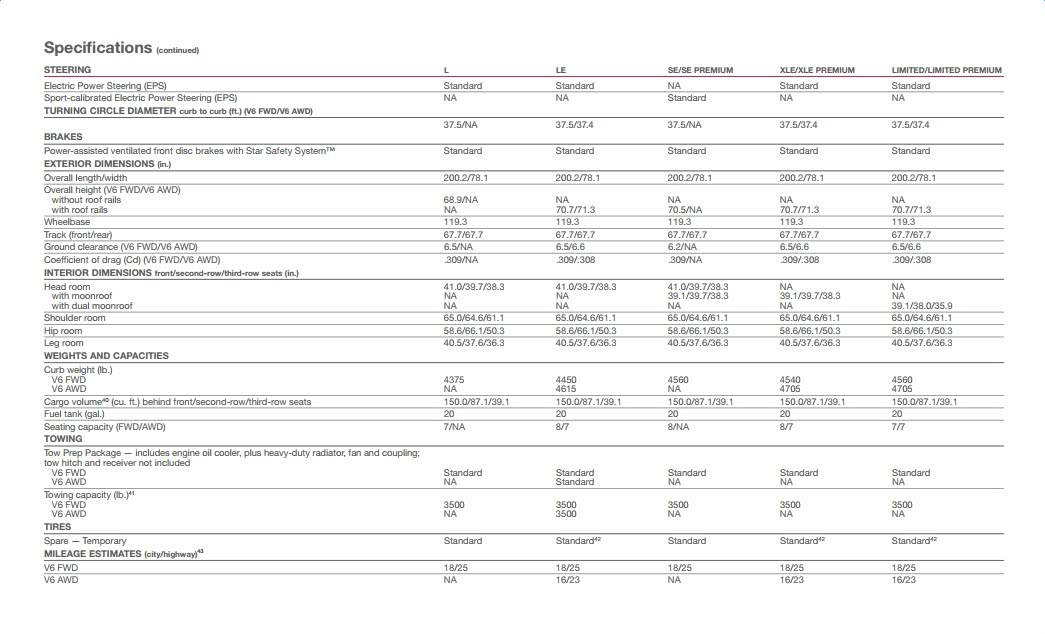 加版车型同样提供五个型号,FWD,LE FWD 8座,SE FWD 8座,限量版FWD 7座,LE AWD七座。也就是说要购买8座车型,加版只有前驱可供选择,四驱版本仅可以选择低配LE前驱版本。