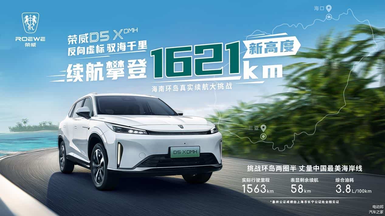 在近期的一次实测中,D5X DMH以满电满油的状态从兰州到上海,完成了1962km的续航成绩、2.8L的百公里平均油耗;而在地形海拔高差更小的海南环岛实测中,D5X DMH也达成了1621km的续航成绩、3.8L的百公里平均油耗,续航方面的竞争力不容小觑,怪不得荣威的高层在接受采访时也敢自信喊话『最强插混在中国,中国最强在荣威』。