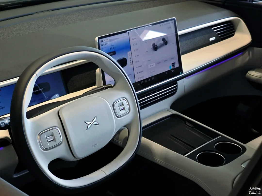 中控台上配备了14.96英寸的悬浮式中控屏,视觉上比较吸睛,有效地提升了座舱的科技气息。搭载Xmart OS智能车机系统,内置高通骁龙SA8155P芯片,支持GPS在线导航、语音识别、4G网络、车联网以及OTA升级功能,兼具一定的实用性和娱乐性。
