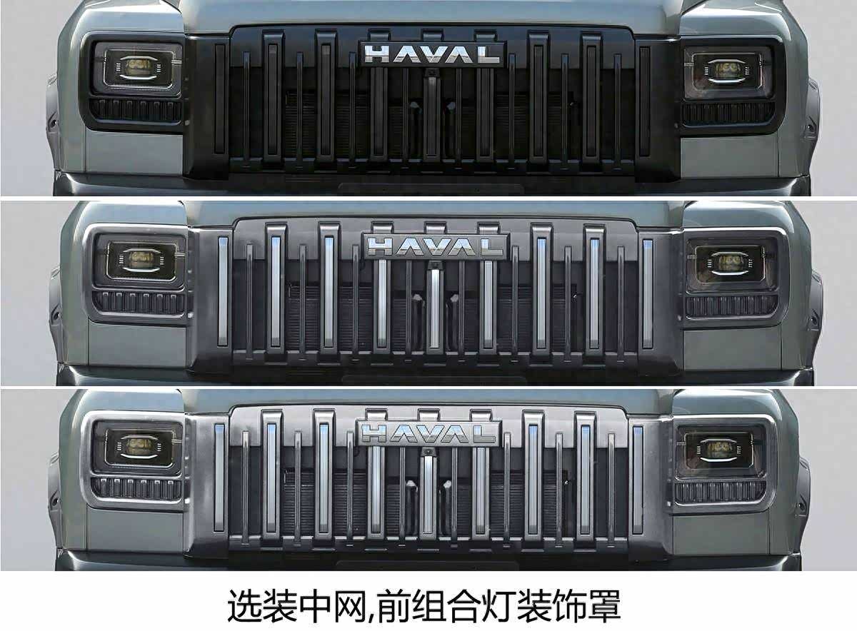 猛龙燃油版车型将换成直瀑式格栅,有三种涂装风格。头灯组调整为方形轮廓,外侧是环形光带。车标改小,置于中网上方中央。看起来有点“小号”哈弗新H9。