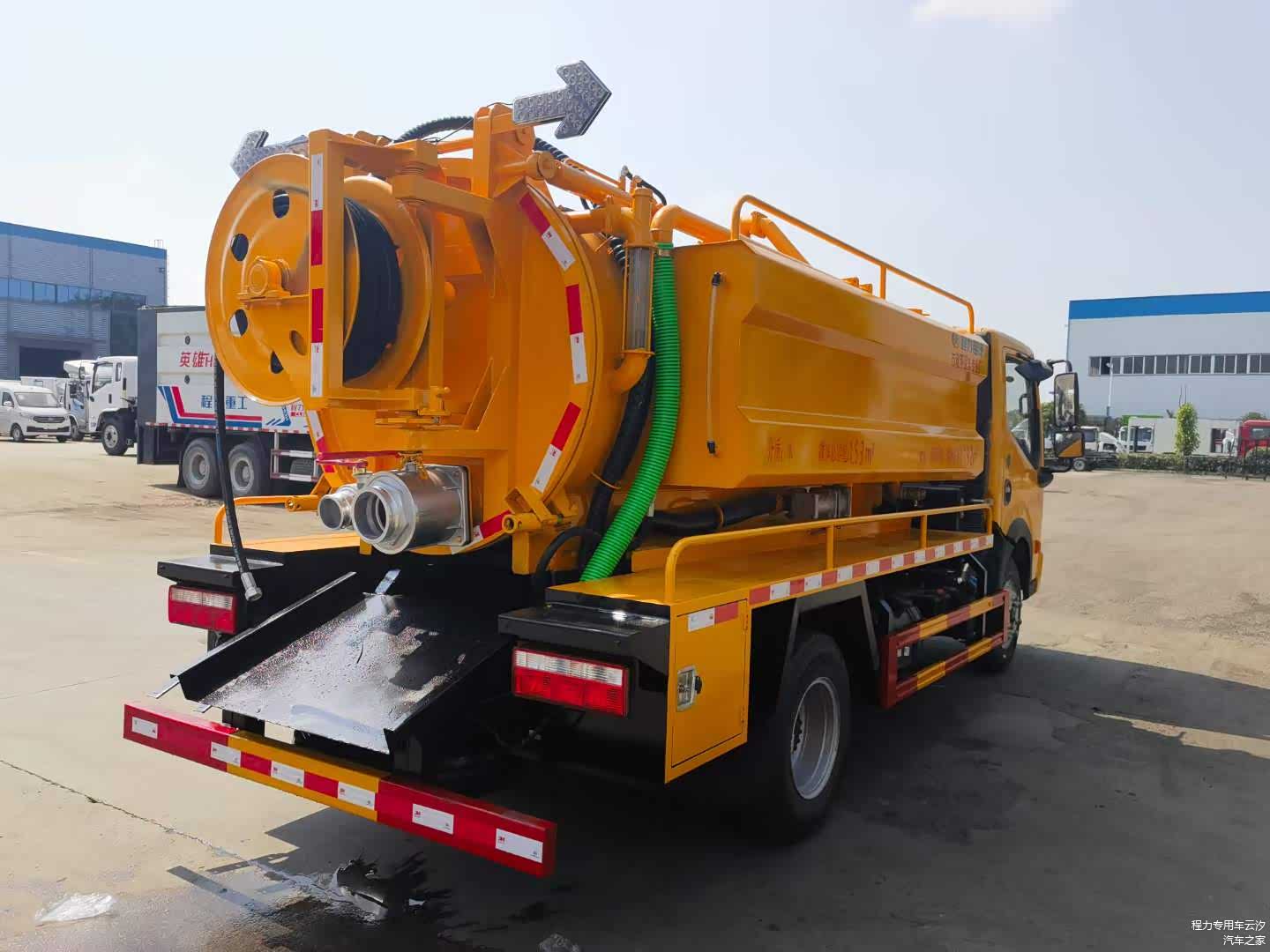 主要配置:玉柴155马力,3308轴距,高压采用品孚215流量高压泵,液压马达回位卷盘及60米直径19高压管,山东SK-9水循环泵,视污管,防溢阀,罐体带举升,后盖开启,气推水,水污互通,尾部一个150球阀排污口,加装后对冲,一个100进污口,配1根8米吸污管,其他为清洗吸污车标配。