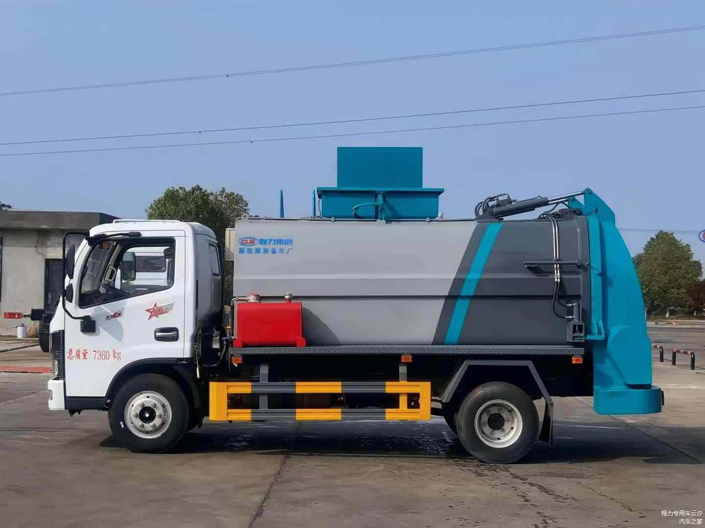 东风小多利卡餐厨垃圾车,6方厨余垃圾清运车,东风小多利卡餐厨垃圾车,容积6方,全柴136马力发动机,推铲卸料,带电控,带清洗装置,可挂120L/240L垃圾桶,尾门密封条,确保滴水不漏!!