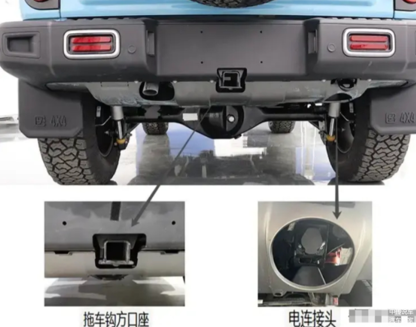 车尾部分,新款212采用侧开式尾门设计,增大了后备厢开口,方便存放物品。备胎支架也经过简化处理,更显简洁大方。此外,新车还配备了倒车雷达和倒车影像功能,同时可选装拖车方口和电连接头,满足户外越野需求。