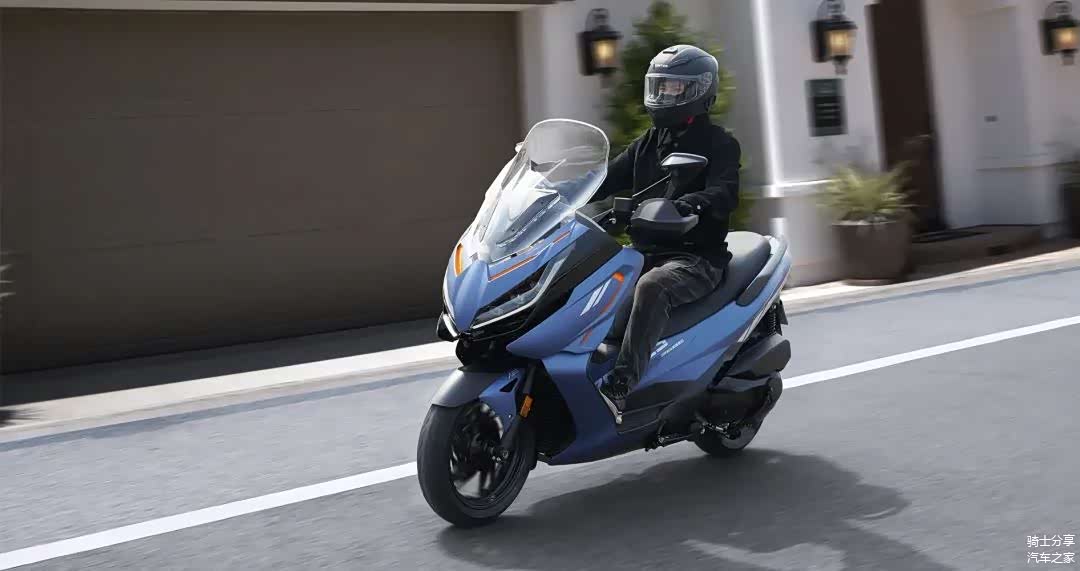这是一款造型前卫时尚的功能性运动踏板车,它的车身结构要比同等排量的大绵羊更加紧凑,轴距被设定在了1405mm,也就是有些250 cc踏板车的标准。