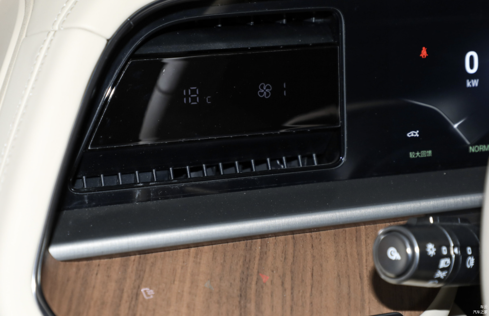 其二是空调智能面板,它由前排两侧出风口的显示屏与木纹饰板内的触敏按键组成,副驾侧可控制风量、温度和出风口开闭。乘客无需调出中控屏空调页面就能完成相关操作,不会影响驾驶员看导航或全景影像等功能。需要说明的是,主驾侧智能面板不包含风量调节功能,结合实际体验,驾驶员用三指操作,副驾乘客通过智能面板控制空调是相对高效的方式。
