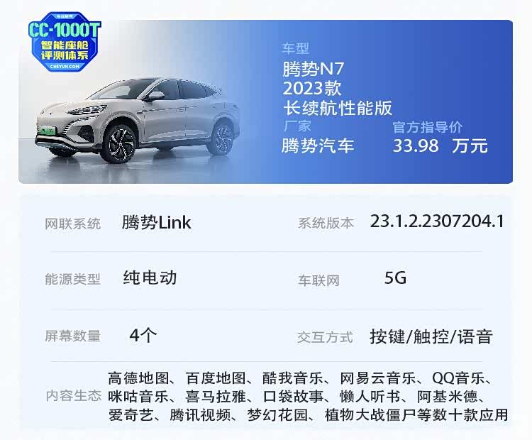 云辇-A空气悬架、6nm制程车规级座舱芯片、双枪超充技术等等,如今提到腾势,小编脑海中浮现的不再是“精装比亚迪”,而是自伪装车时期就不断曝光的技术名词。作为比亚迪e平台3.0的第五款车型,与多项新技术绑定的 腾势N7(图片 | 参数 | 询价),似乎自带改变消费者对品牌认知的使命,也让人对其智能化体验有着不小期待。本期咱们借CC-1000T智能座舱评测体系,看看自带副驾屏的腾势N7,会带来怎样的座舱智能化体验。