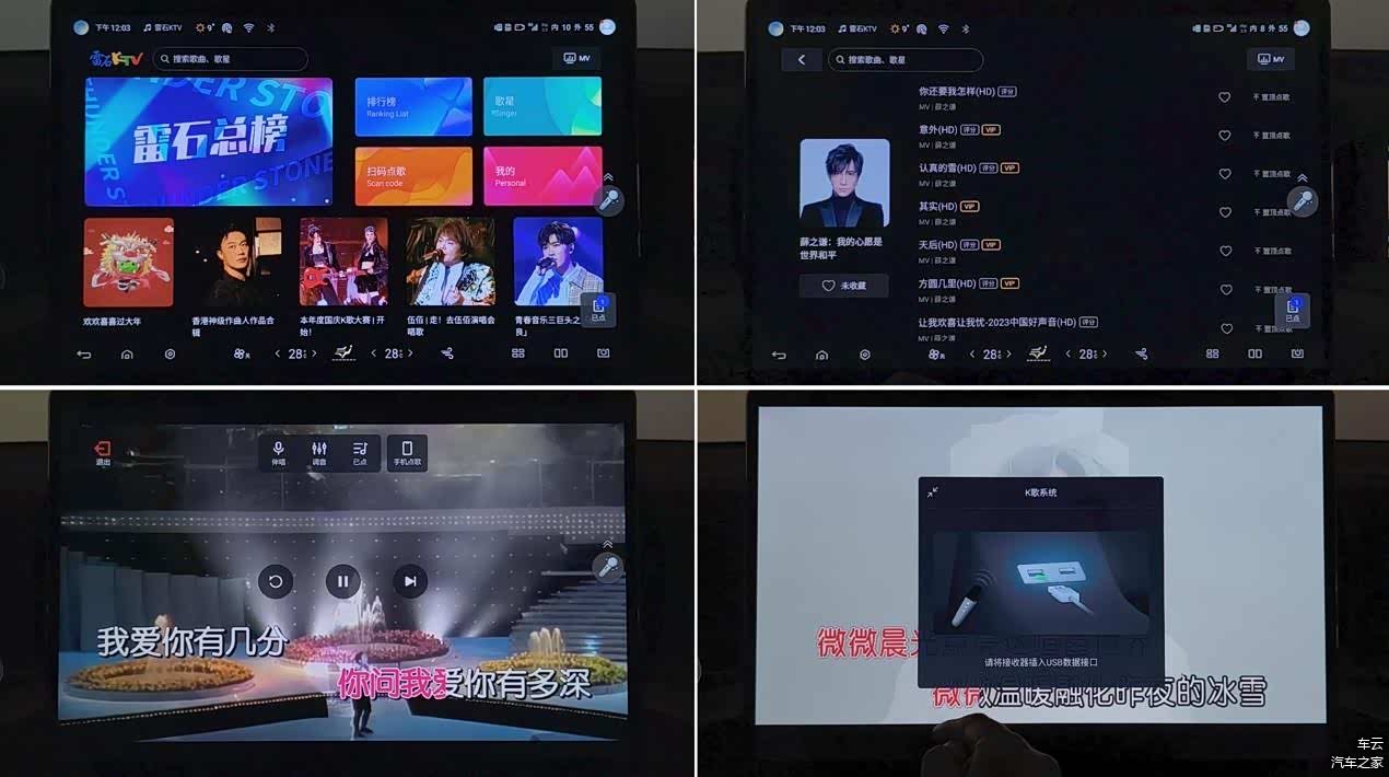 其中就包含车内K歌的场景,通过雷石KTV乘员可进行点歌、叫好、开/闭原唱等多种操作,配合专用的麦克风,腾势N7能变身移动练歌房,在临时休息或朋友聚会时提供更多乐趣。