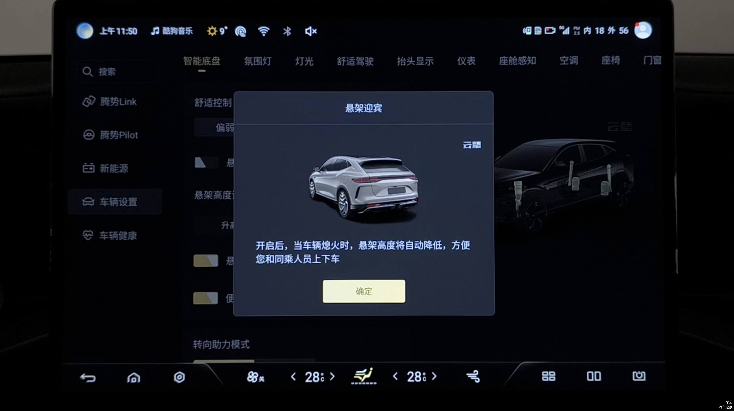 曾经空气悬架为兼顾车辆通过性与铺装路面行驶稳定性而生,如今它服务的场景更加多元化,比如车辆下电(或熄火)状态时,空气悬架可降低车身高度,便于乘员上下车,也可在打开后备厢取物时,降低后悬架高度,为用户取放重物提供便利。